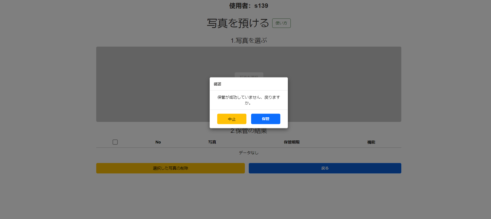 保管が成功していません、戻りますか。